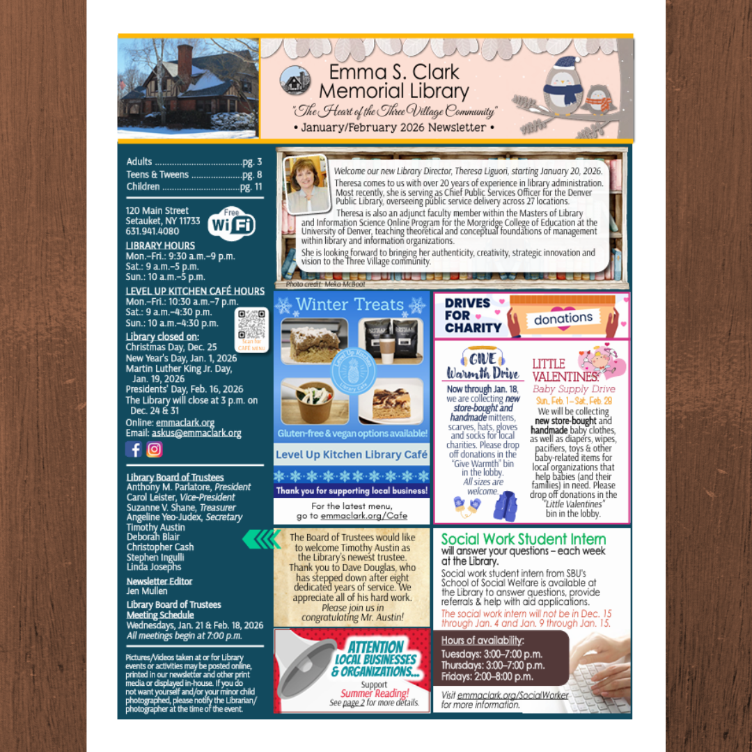 Stony Brook University's School of Social Welfare student intern, James, is on-site at the Library each week during designated hours to answer questions, help with filling out forms, or seek referrals.Read More +