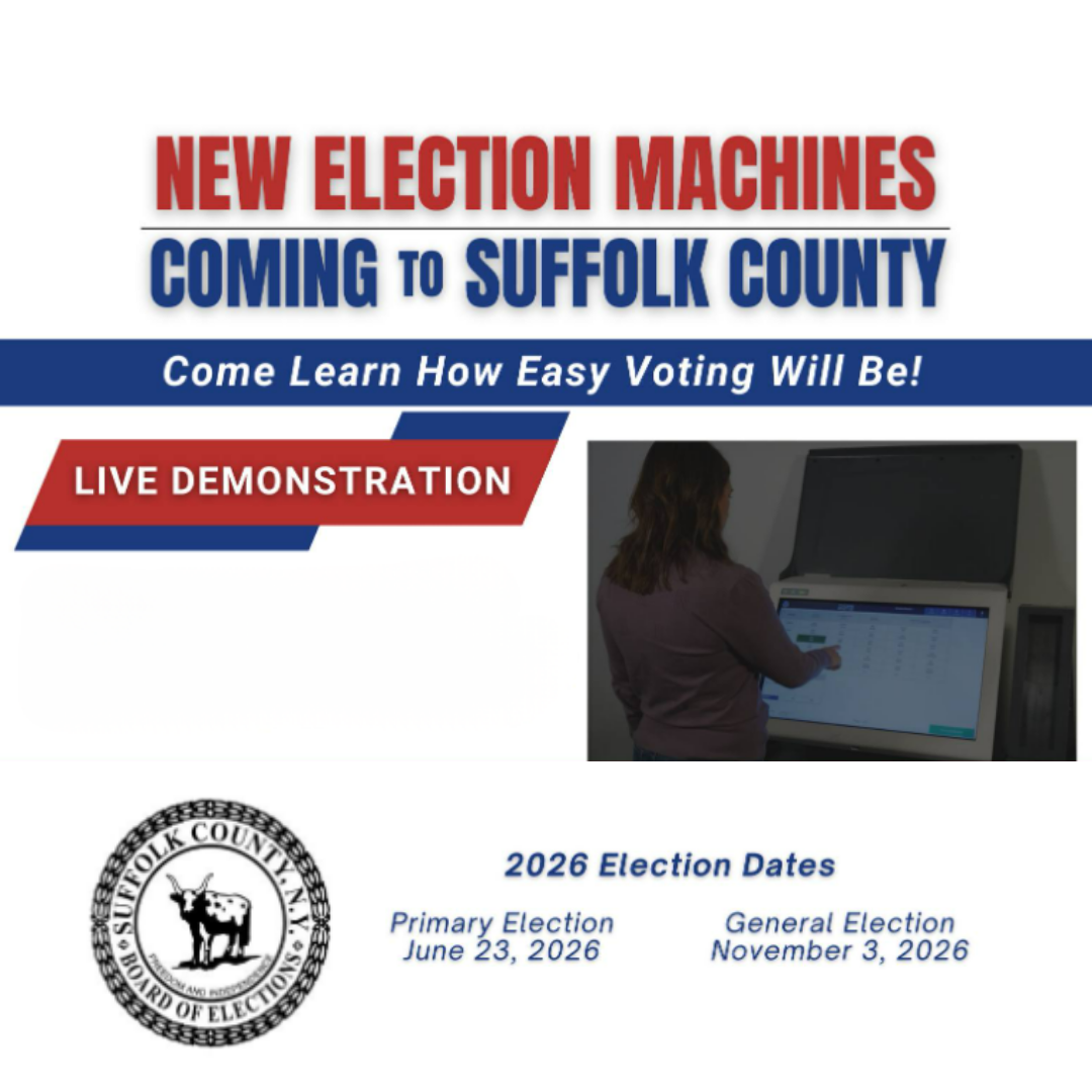 The Suffolk County Board of Elections will be at Emma Clark Library to introduce new voting machines that will be used for the first time at the local primaries in June.Read More +
